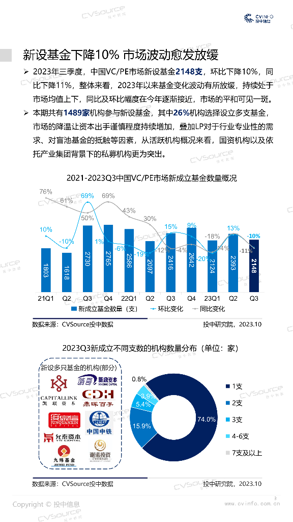 投中统计:2023三季度基金数量小幅回落,投资数量环比上涨6%.pdf