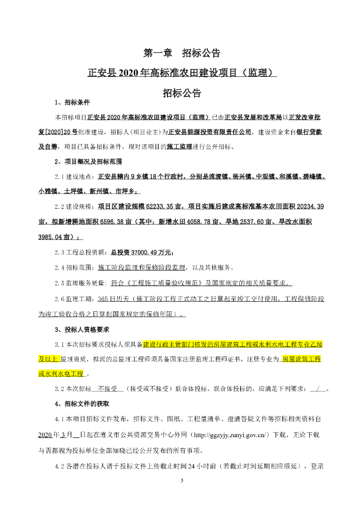 [贵州]高标准农田建设项目监理招标文件2020.doc