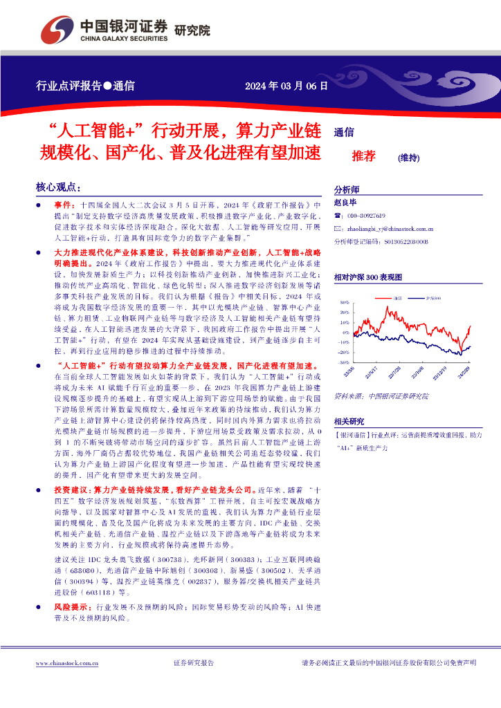 中国银河:通信行业点评报告:“人工智能+”行动开展,算力产业链规模化、国产化、普及化进程有望加速.pdf