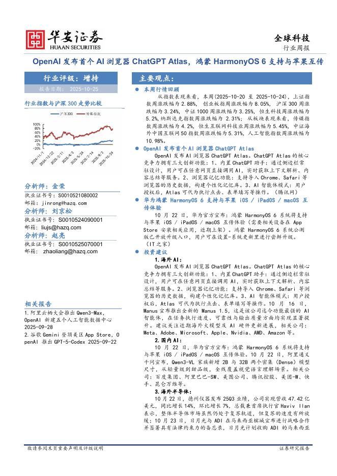 华安证券:全球科技行业周报:OpenAI发布首个AI浏览器ChatGPTAtlas,鸿蒙HarmonyOS6支持与苹果互传.pdf