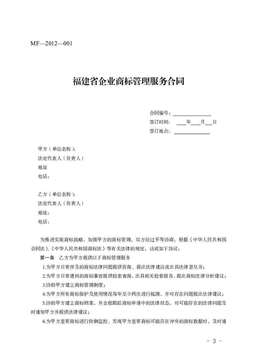 MF-2012-001 福建省企业商标管理服务合同(示范文本).pdf