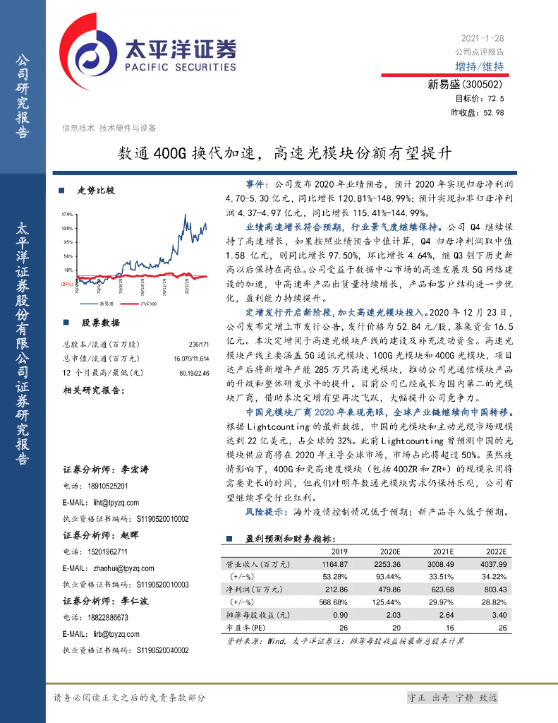太平洋证券:新易盛(300502)-数通400G换代加速,高速光模块份额有望提升.pdf