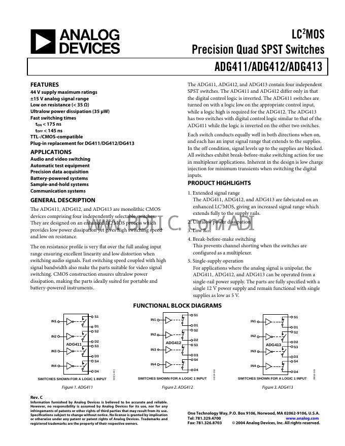 ANALOG DEVICES ADG412 数据手册 ANALOG DEVICES ADG222 数据手册 ANALOG DEVICES ADG201HS 数据手册 ANALOG DEVICES ADG201A 数据手册 ANALOG DEVICES AD7590 数据手册 ANALOG DEVICES AD630 数据手册 ANALOG DEVICES AD22100 数据手册 ANALOG DEVICES AD7945 数据手册 ANALOG DEVICES AD7846 数据手册 ANALOG DE.pdf