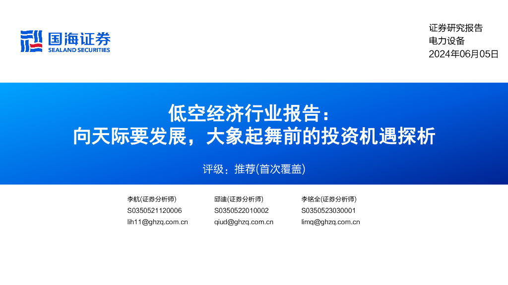 国海证券:低空经济行业报告:向天际要发展,大象起舞前的投资机遇探析.pdf