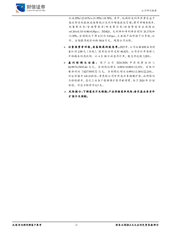 财信证券:雪天盐业(600929)-稳健经营,重视股东回报.pdf