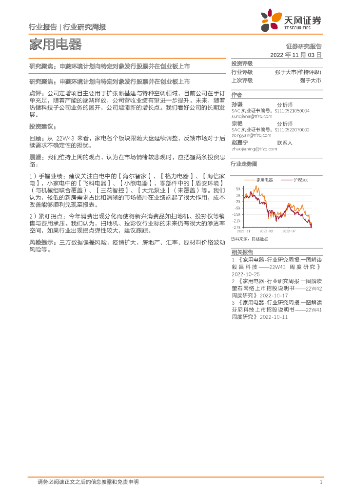 天风证券:家用电器行业研究周报:研究聚焦:申菱环境计划向特定对象发行股票并在创业板上市.pdf