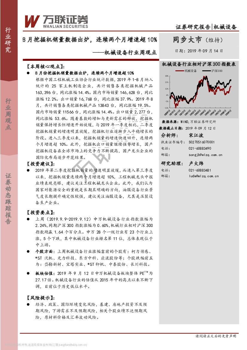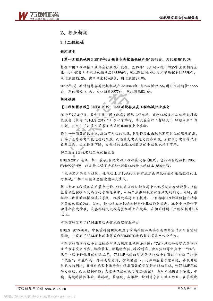 万联证券:机械设备行业周观点:8月挖掘机销量数据出炉,连续两个月增速超10%.pdf