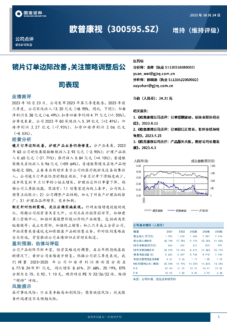 国金证券:欧普康视(300595)-镜片订单边际改善,关注策略调整后公司表现.pdf