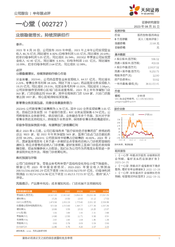 天风证券:一心堂(002727)-业绩稳健增长,持续深耕细作.pdf