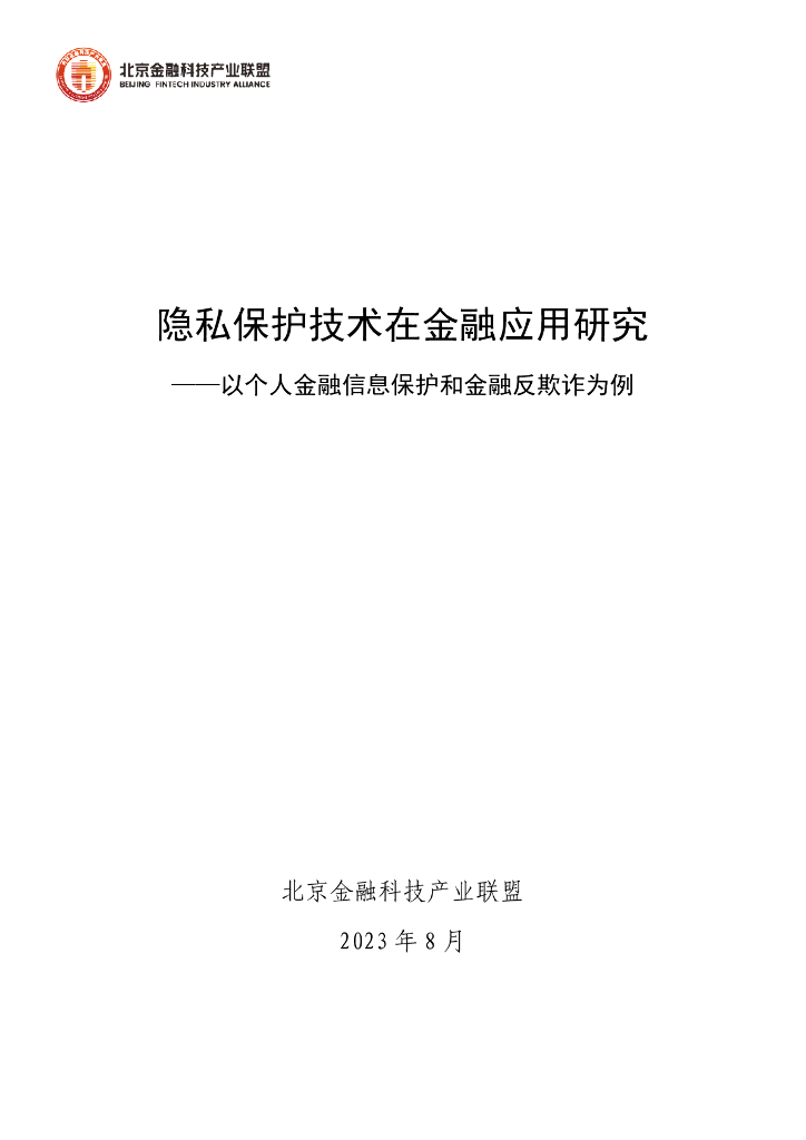 北京金融科技产业联盟:2023隐私保护技术在金融应用研究——以个人金融信息保护和金融反欺诈为例.pdf