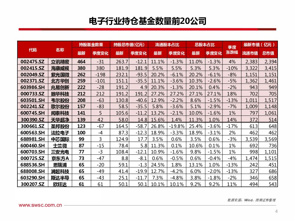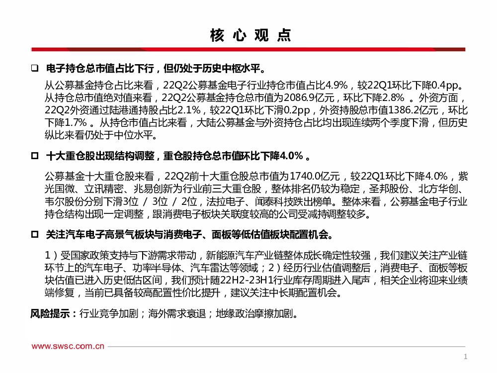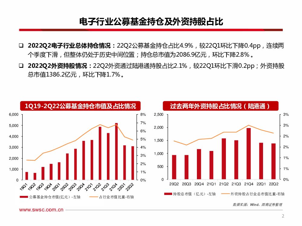 西南证券:电子行业2022Q2基金持仓分析:电子持仓结构性调整,配置比重小幅回落.pdf