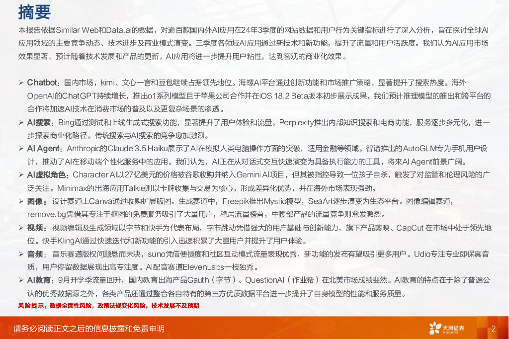 天风证券:数据研究·AI应用流量监控:2024年三季度全球AI应用趋势.pdf