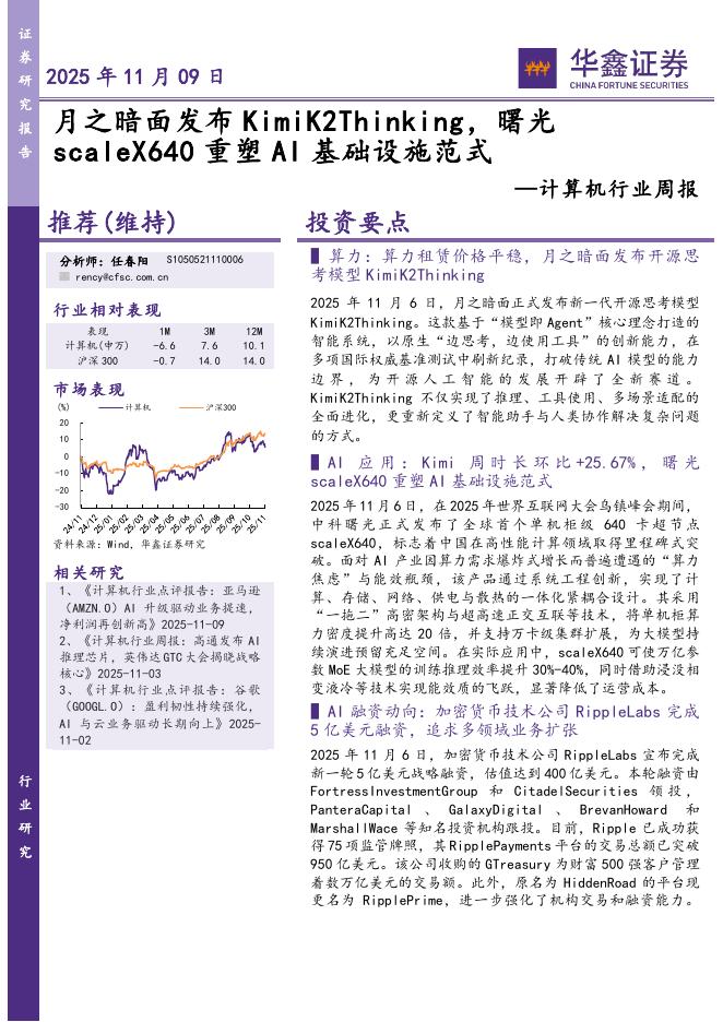 华鑫证券:计算机行业周报:月之暗面发布KimiK2Thinking,曙光scaleX640重塑AI基础设施范式.pdf