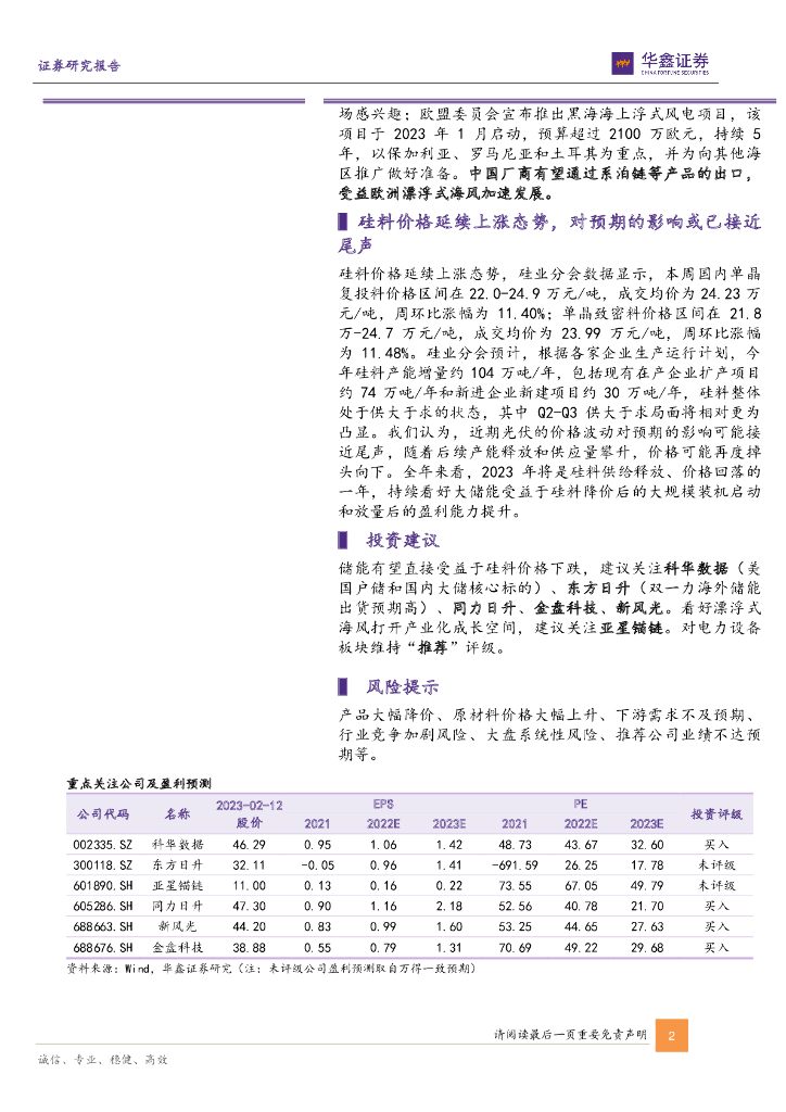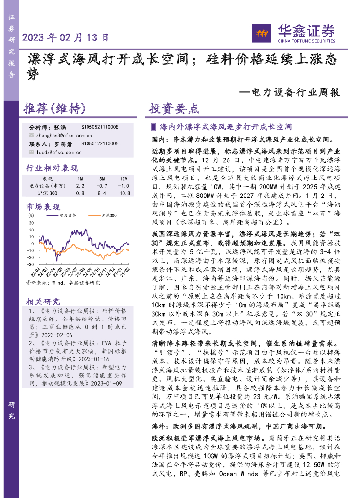 华鑫证券:电力设备行业周报:漂浮式海风打开成长空间;硅料价格延续上涨态势.pdf
