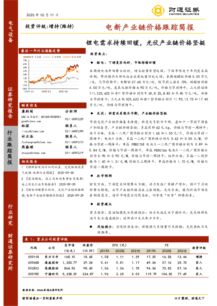 财通证券:电新产业链价格跟踪简报:锂电需求持续回暖,光伏产业链价格坚挺.pdf