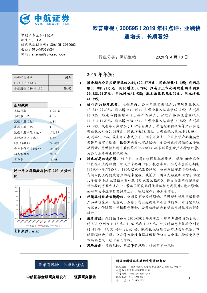 中航证券:欧普康视(300595)-2019年报点评:业绩快速增长,长期看好.pdf
