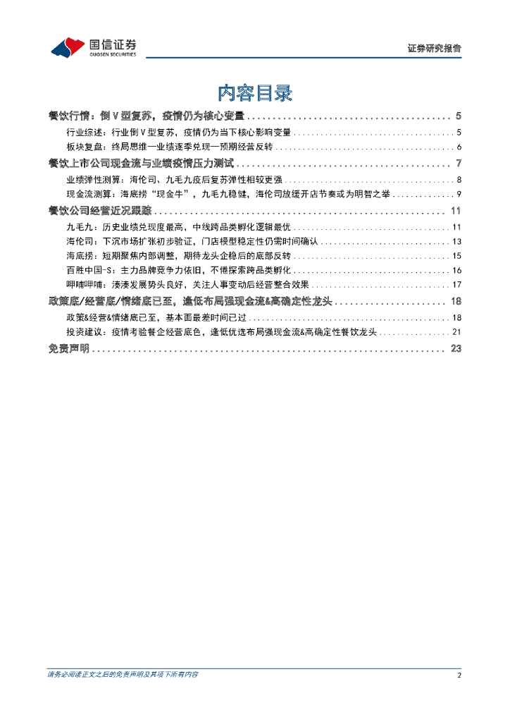 国信证券:餐饮行业系列研究之四——疫情压力测试篇:疫情大考检验经营底色,逢低布局强现金流&高确定性龙头.pdf