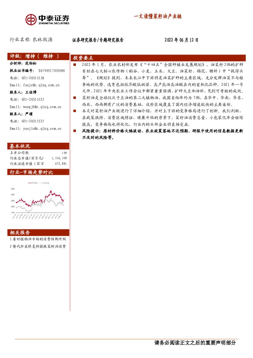 中泰证券:农林牧渔专题研究报告:一文读懂菜籽油产业链.pdf