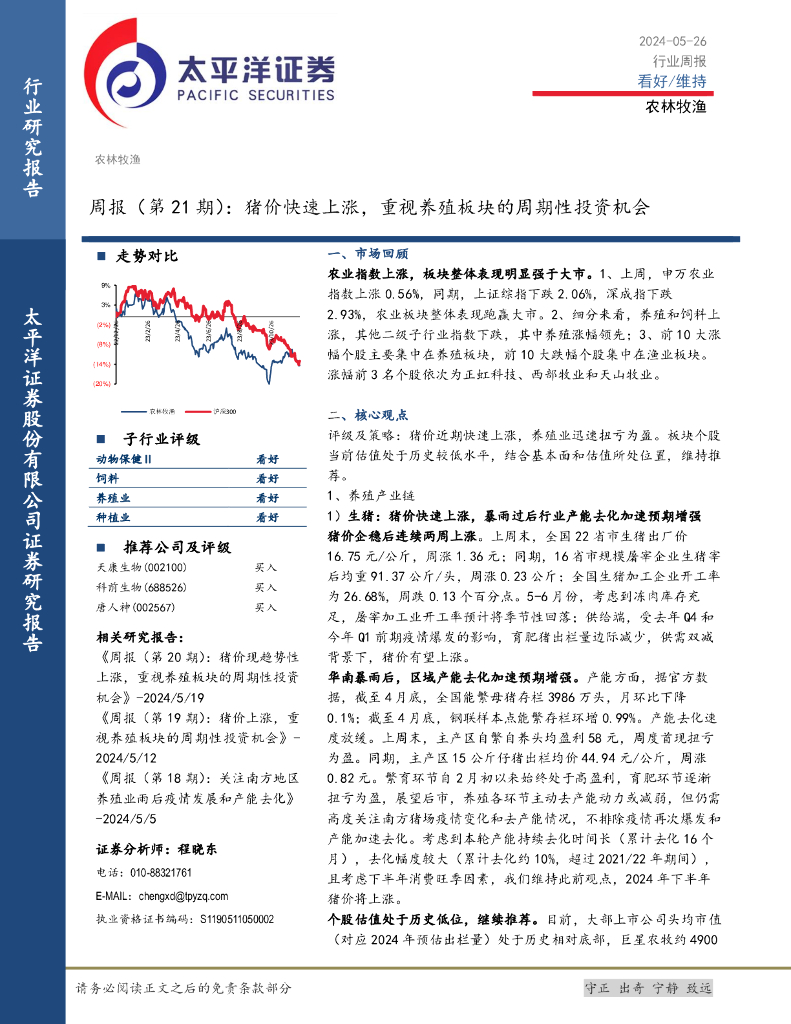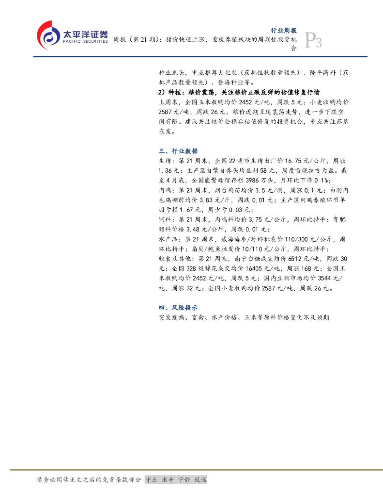 太平洋证券:农林牧渔周报(第21期):猪价快速上涨,重视养殖板块的周期性投资机会.pdf