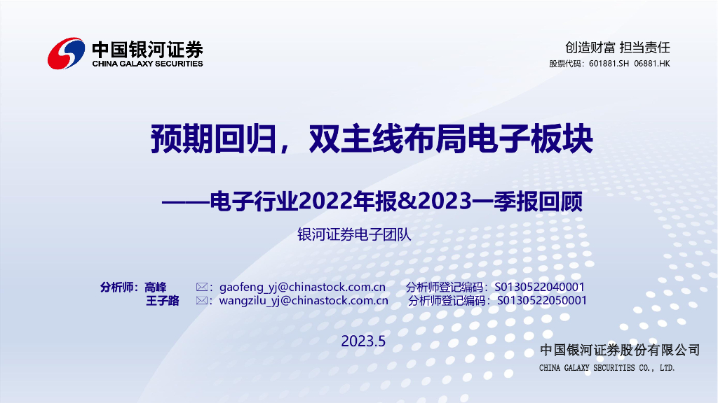 中国银河:电子行业2022年报&2023一季报回顾:预期回归,双主线布局电子板块.pdf