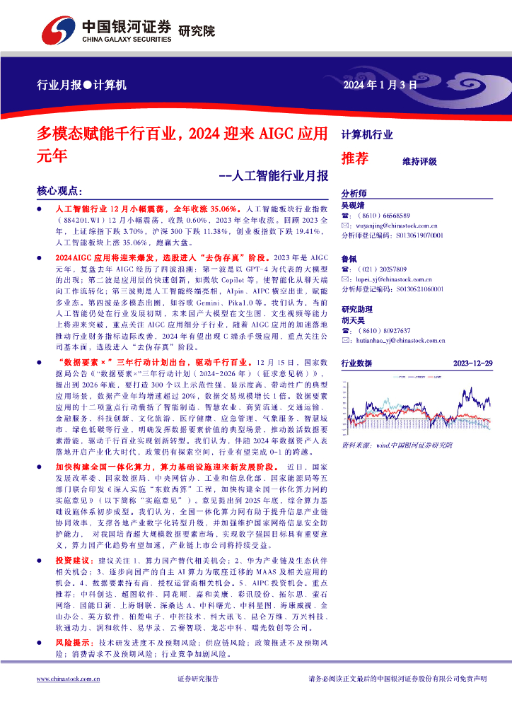 中国银河:人工智能行业月报:多模态赋能千行百业,2024迎来AIGC应用元年.pdf