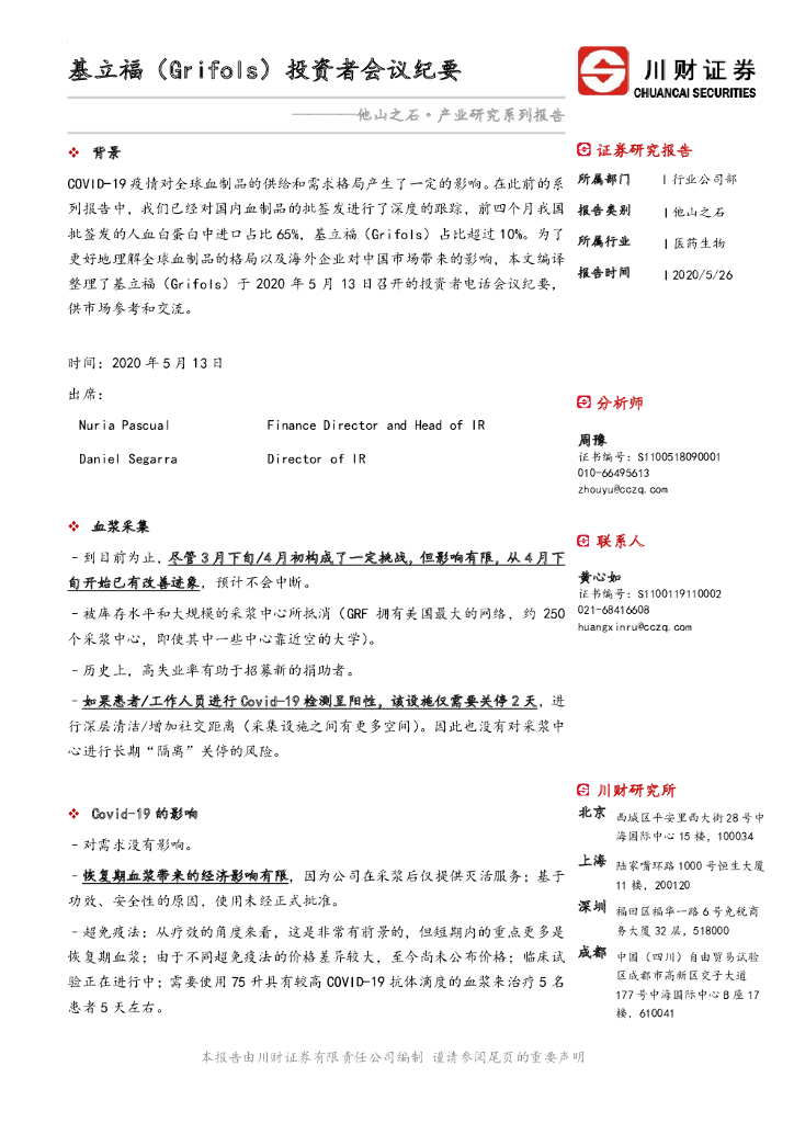 川财证券:医药生物:他山之石·产业研究系列报告-基立福(Grifols)投资者会议纪要.pdf