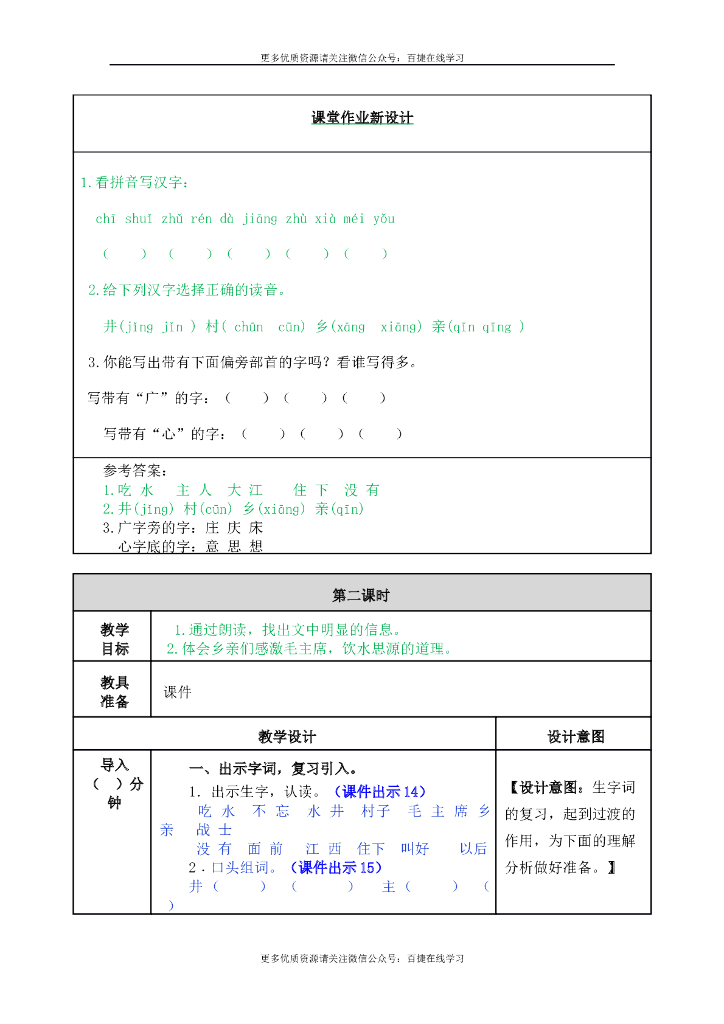 一年级语文下册一下--1 吃水不忘挖井人.doc