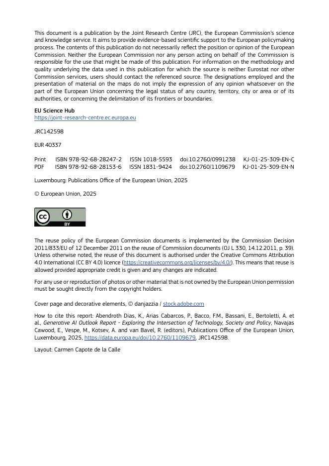 欧盟委员会:2025年生成式AI展望报告:探索技术、社会和政策的交汇点(英文版).pdf
