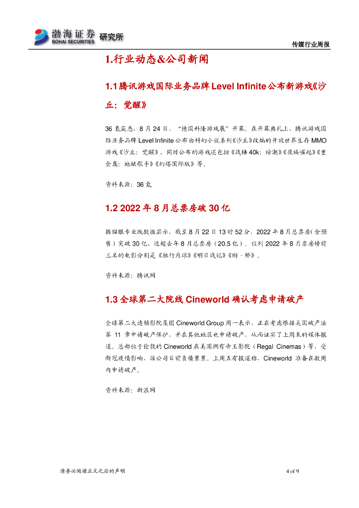 渤海证券:文化传媒行业周报:中报业绩有所分化,出版行业业绩相对较好.pdf
