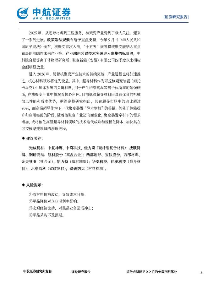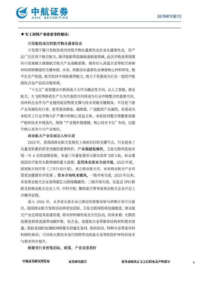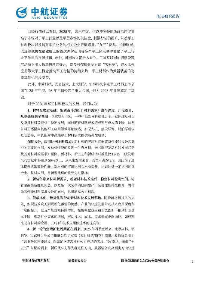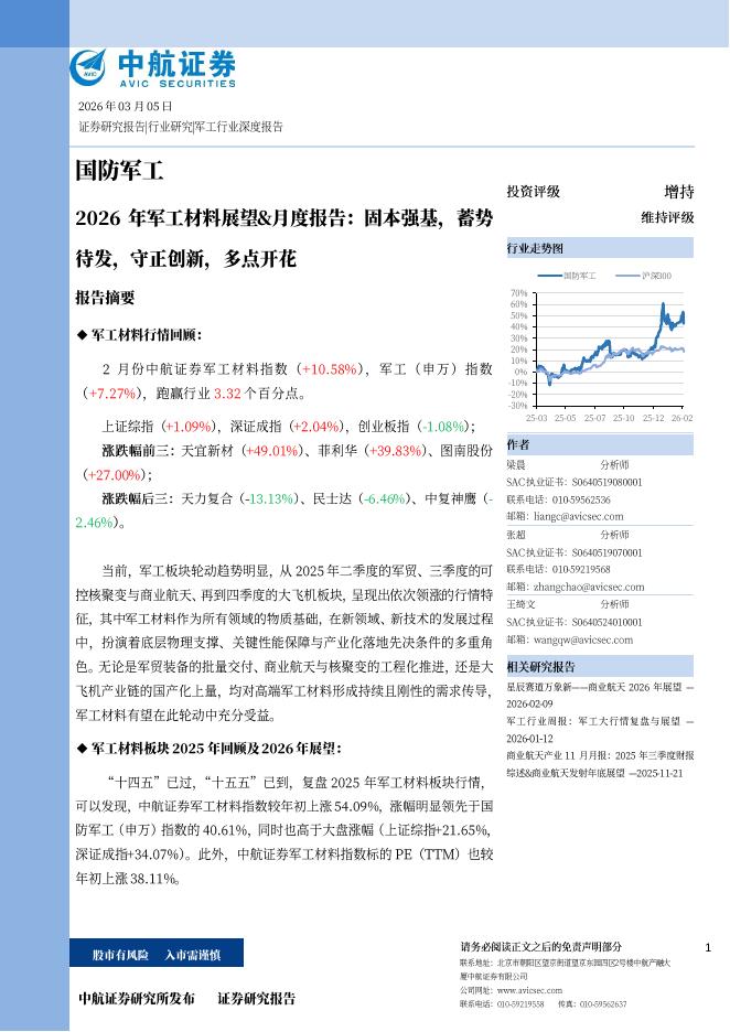 中航证券:国防军工:2026年军工材料展望&月度报告:固本强基,蓄势待发,守正创新,多点开花.pdf