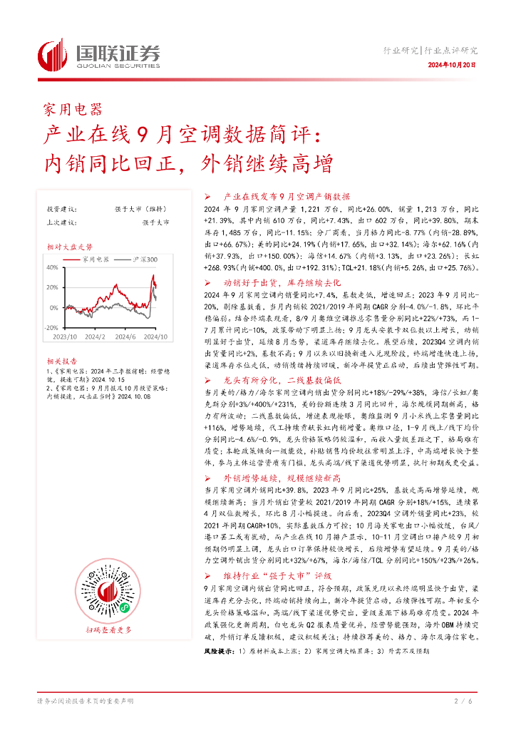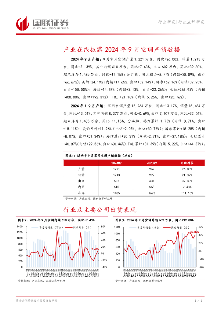 国联证券:产业在线9月空调数据简评:内销同比回正,外销继续高增.pdf