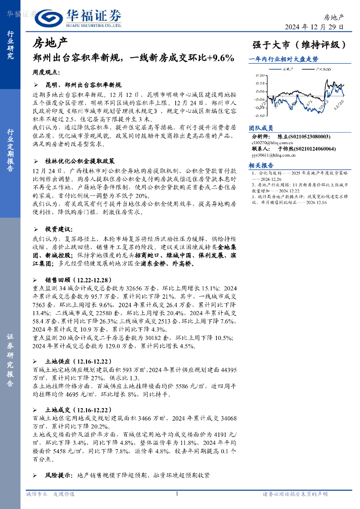 华福证券:房地产行业定期报告:郑州出台容积率新规,一线新房成交环比+9.6%.pdf
