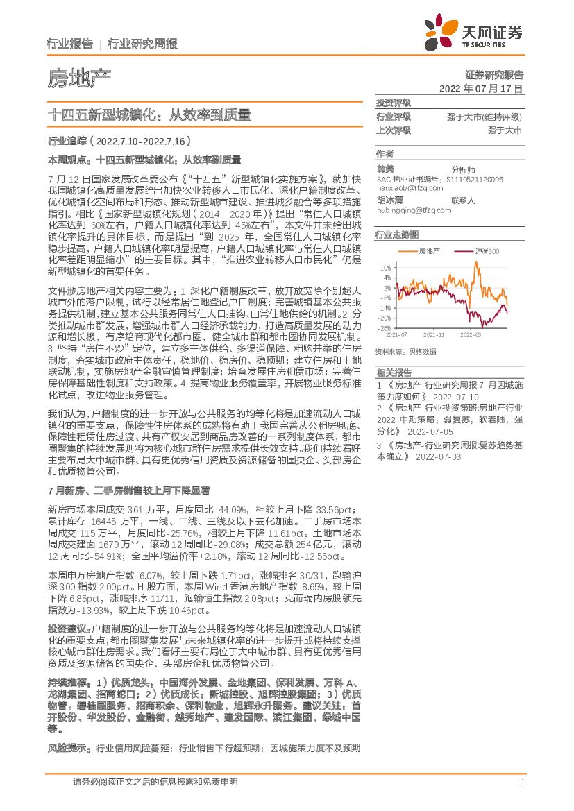 天风证券:房地产行业研究周报:十四五新型城镇化:从效率到质量.pdf
