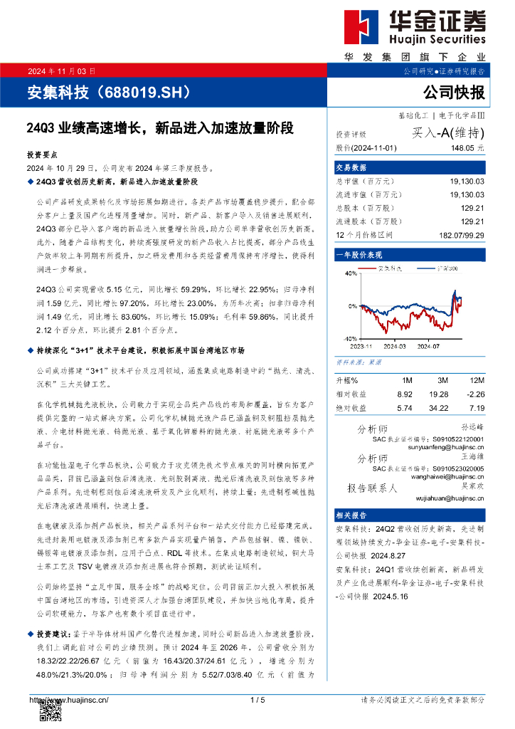 华金证券:安集科技(688019)-24Q3业绩高速增长,新品进入加速放量阶段.pdf