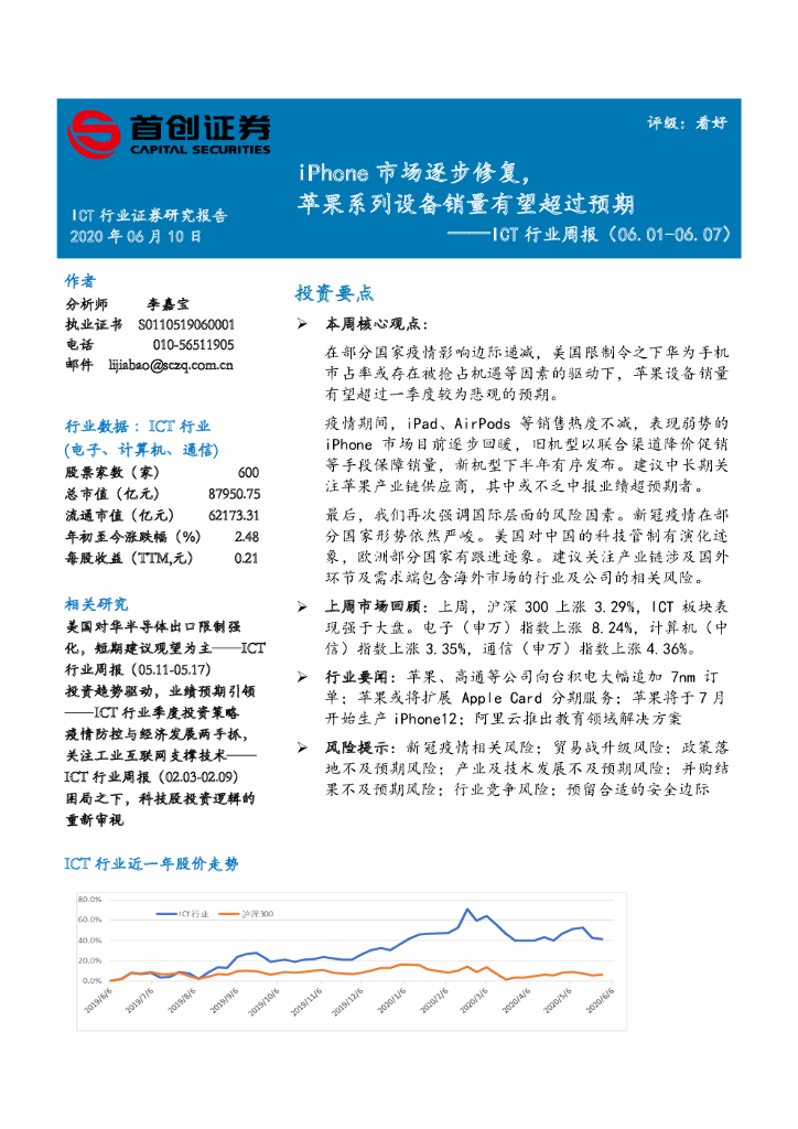 首创证券:ICT行业周报:iPhone市场逐步修复,苹果系列设备销量有望超过预期.pdf