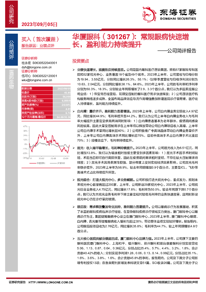东海证券:华厦眼科(301267)-公司简评报告:常规眼病快速增长,盈利能力持续提升.pdf
