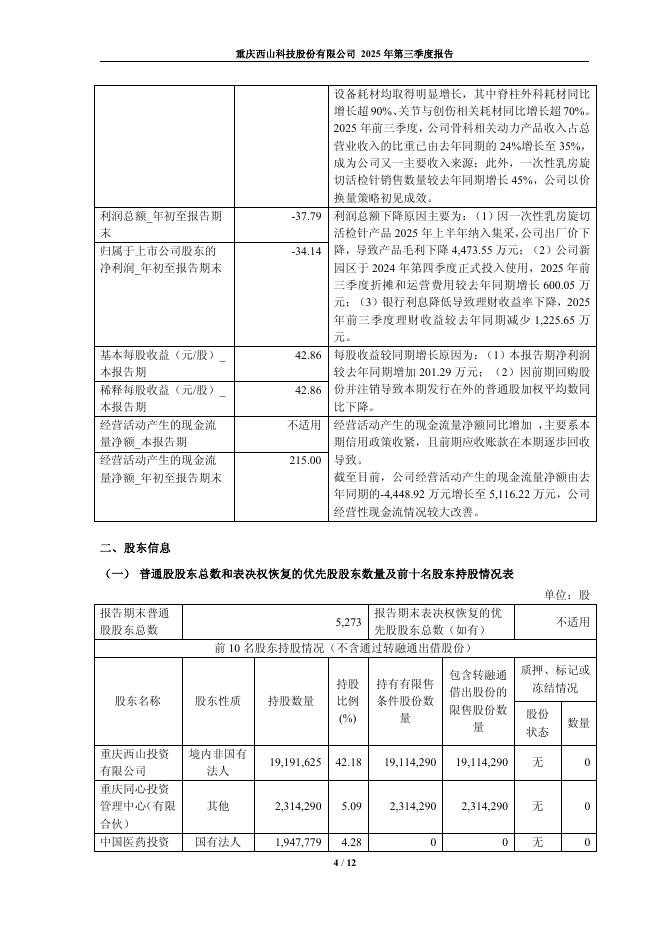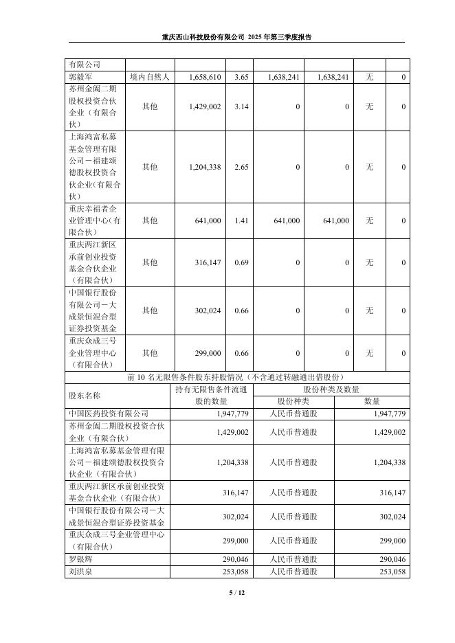 688576-西山科技:重庆西山科技股份有限公司2025年第三季度报告.pdf