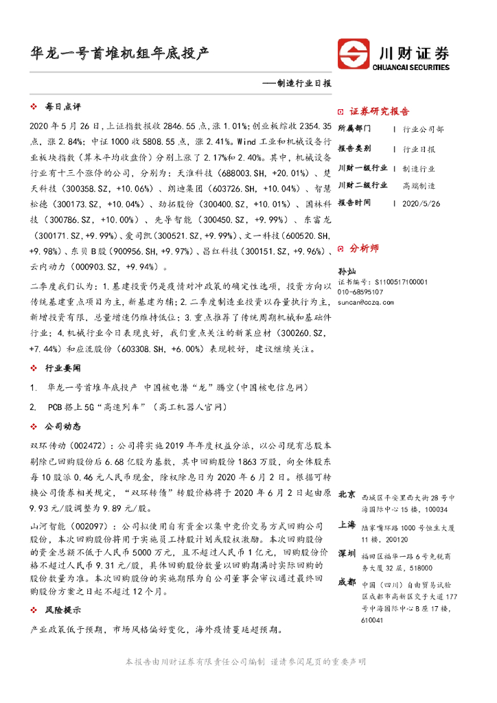 川财证券:制造行业日报:华龙一号首堆机组年底投产.pdf