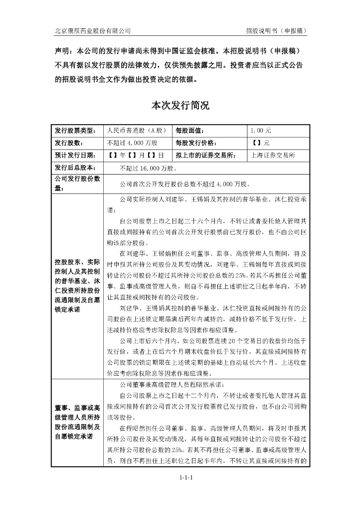 北京康辰药业股份有限公司上交所主板IPO上市招股说明书.pdf
