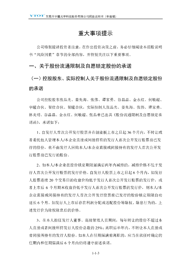 东莞市宇瞳光学科技股份有限公司深交所创业板IPO上市招股说明书.pdf