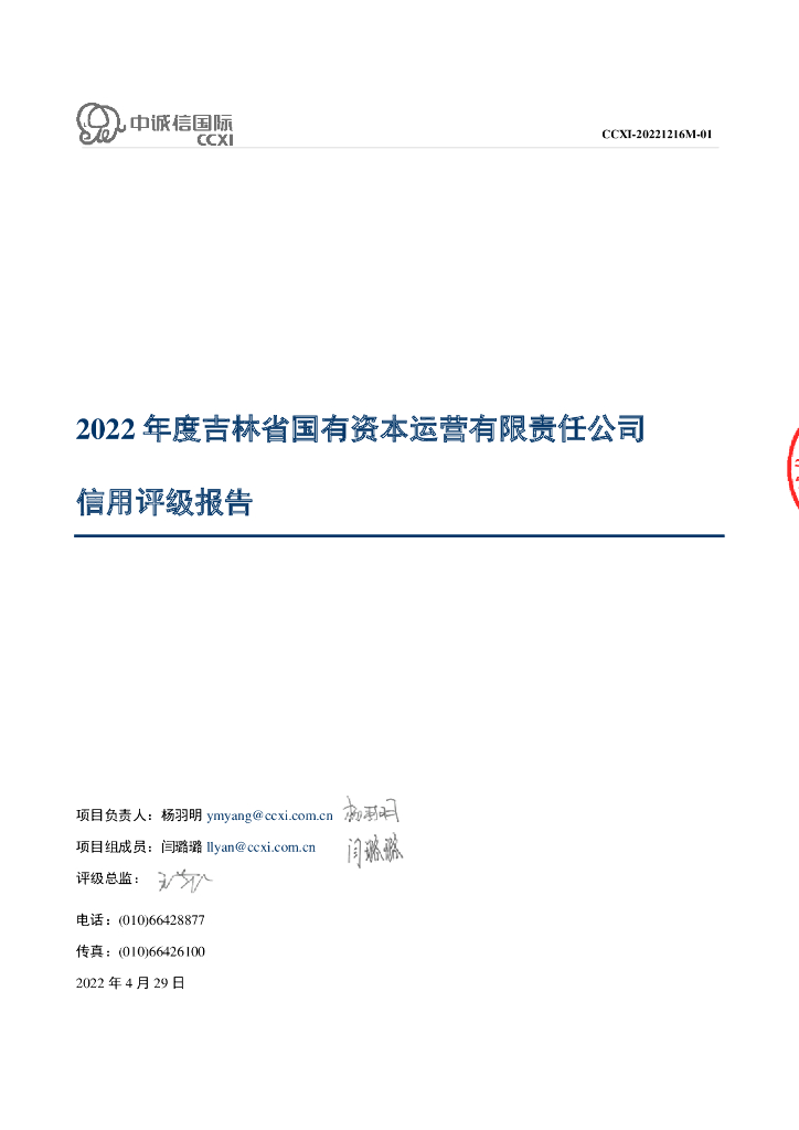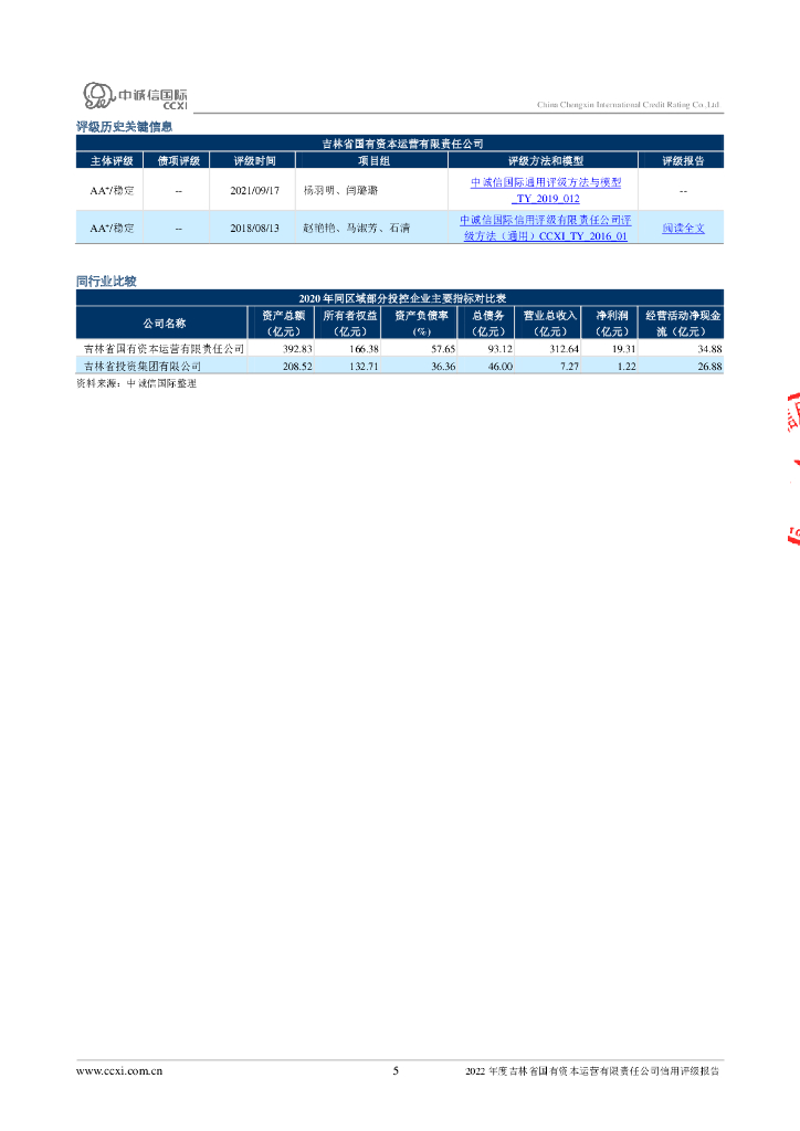 中诚信:吉林省国有资本运营有限责任公司2022年度信用评级报告.pdf