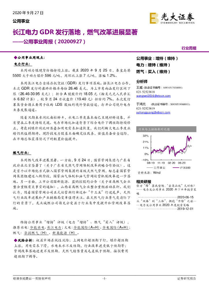光大证券:公用事业周报:长江电力GDR发行落地,燃气改革进展显著.pdf