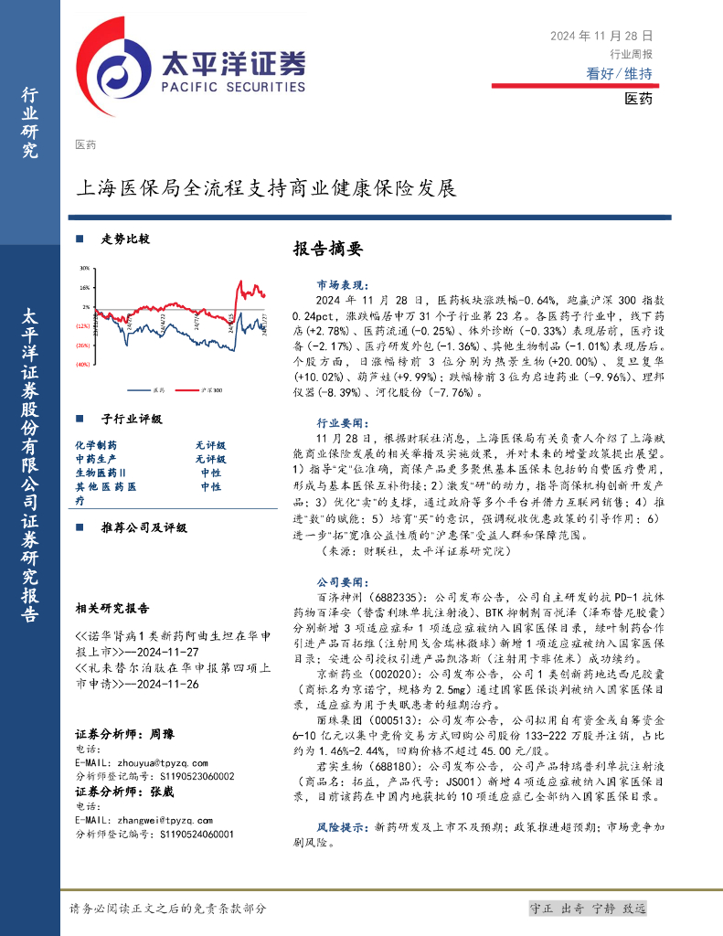 太平洋证券:医药行业周报:上海医保局全流程支持商业健康保险发展.pdf