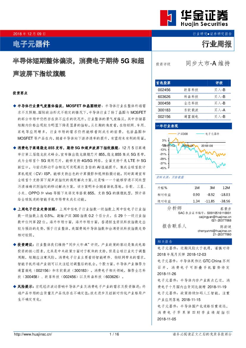 华金证券:电子元器件行业周报:半导体短期整体偏淡,消费电子期待5G和超声波屏下指纹旗舰.pdf