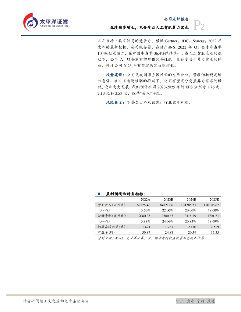 太平洋证券:浪潮信息(000977)-业绩稳步增长,充分受益人工智能算力需求.pdf