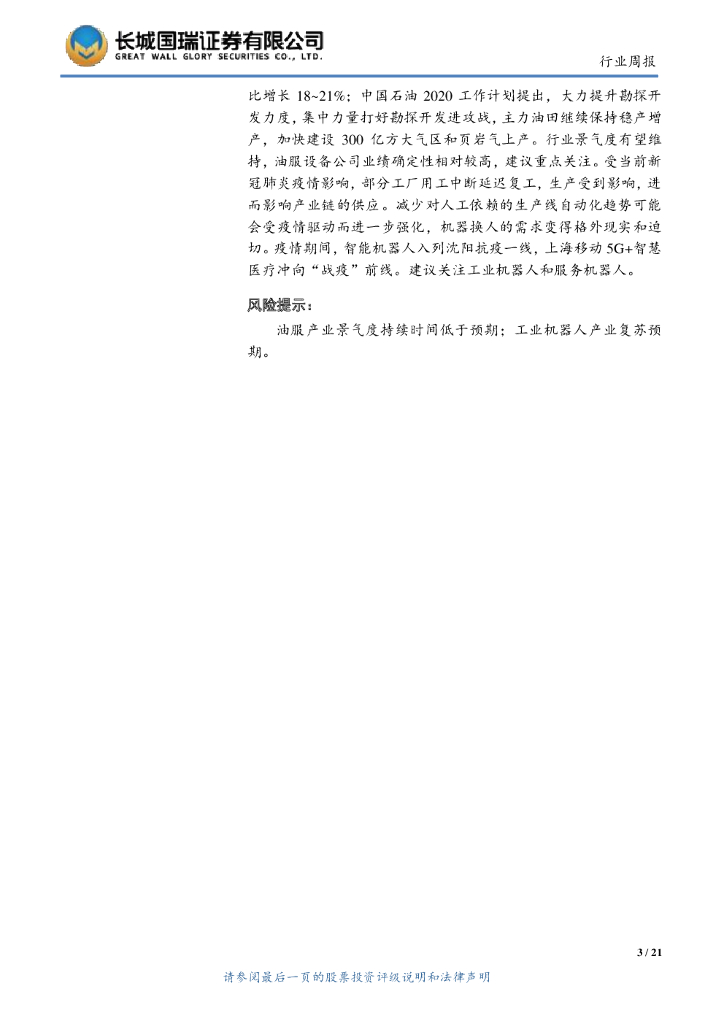 长城国瑞证券:机械设备行业双周报2020年第3期总第149期:关注油服设备、工业机器人、服务机器人.pdf