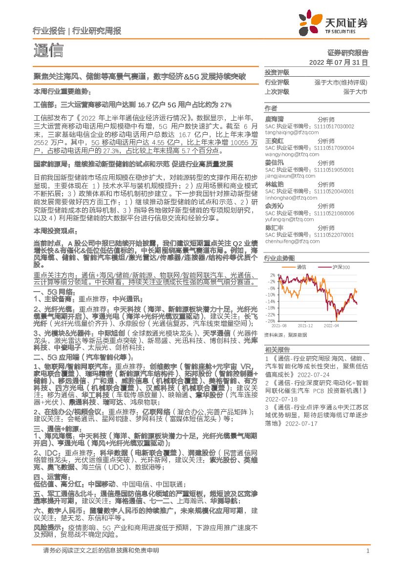 天风证券:通信行业研究周报:聚焦关注海风、储能等高景气赛道,数字经济&5G发展持续突破.pdf