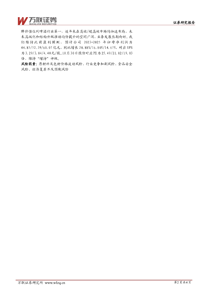 万联证券:青岛啤酒(600600)-点评报告:高基数下销量有所承压,结构升级趋势延续.pdf