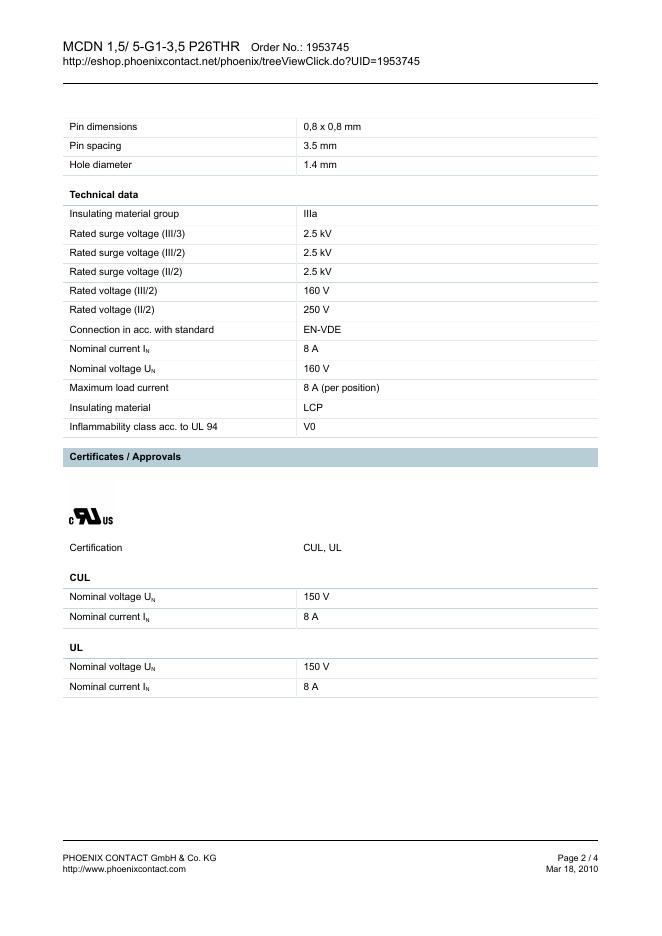 PHOENIX CONTACT MCDN 1,5/ 5-G1-3,5 P26THR Order No.: 1953745 The figure shows a 10-position version of the product 数据手册.pdf