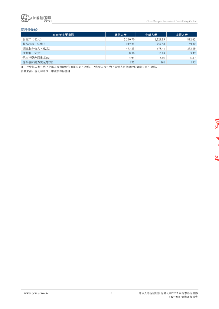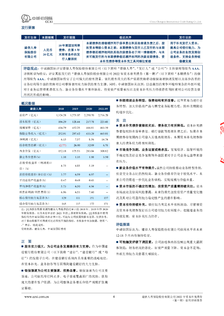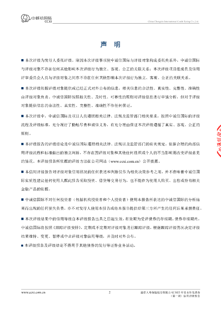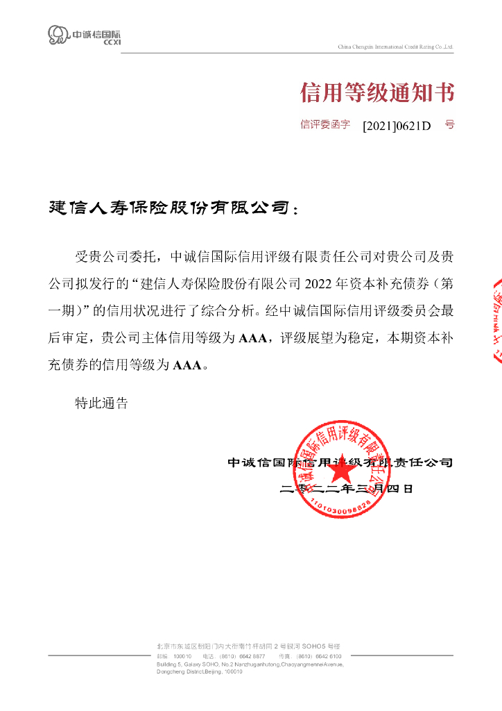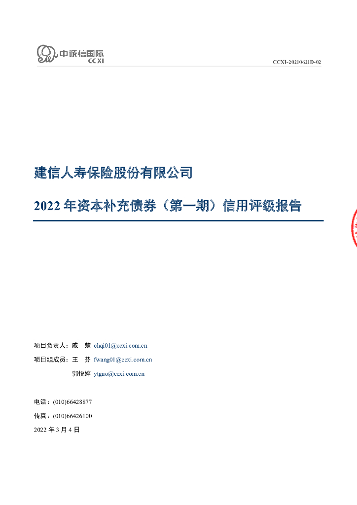 中诚信:建信人寿保险股份有限公司2022年资本补充债券(第一期)信用评级报告及跟踪评级安排(中诚信国际信用评级有限责任公司).pdf